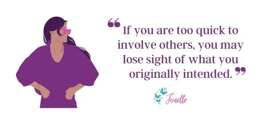 One of the reasons why you need to take the time to figure things out for yourself without the input of others is so that the foundation of what you are planning is built on your own ideas and desires. Whatever you do should be authentic to you. If you are too quick to involve others, you may lose sight of what you originally intended.