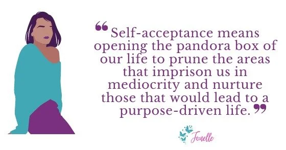 For me, this was a difficult journey that continues to date. Before I could begin accepting myself, I needed to decipher between my voice and that of other people of influence. From childhood, we internalize the words and reactions of our parents, teachers, and friends. As we grow up, the messages that are reinforced take root and the most hurtful linger in the background seeking confirmation from anyone willing to give it. Later in adulthood, we cling to anyone who reinforces those very messages. Consequently, we choose toxic relationships, live below our potential, and follow the path that was recklessly spoken over our lives. Self-acceptance means opening the pandora box of our life to prune the areas that imprison us in mediocrity and nurture those that would lead to a purpose-driven life.