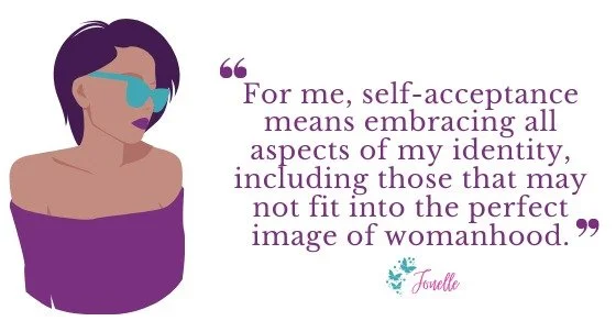 When I think about self-acceptance, I think of an ideal state of being that allows an individual to live in a state of authenticity. For me, that means embracing all aspects of my identity, including those that may not fit into the perfect image of womanhood. On a daily basis, I am bombarded by images of a superwoman. She can perfectly balance physical fitness, motherhood, romantic relationships, anti-aging, and the demands of her successful career. Very often, when a woman shows any flaws, whether it be physical or emotional, outsiders are quick to give their opinions on how she should have lived her life and what choices were appropriate for her. The crazy bit is that there is no standard for this ideal woman. The rules change based on age, wealth, relationship status, ethnicity, and parental status.